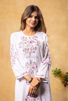 Elevate your wardrobe with timeless elegance and intricate craftsmanship! The Nargis Chikankari Multi Embroidered Long Kurta in a pristine white hue is the epitome of traditional sophistication, designed to make you stand out at every occasion. Perfectly blending comfort and style, this straight long kurti is an ideal choice for women who love to embrace their cultural roots while exuding grace.
