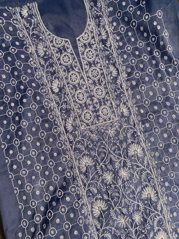Neelam Chikankari Jaal Work Unstiched Kurta Dupatta Set