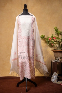 - Craftsmanship: Traditional Chikankari embroidery with white and pastel pink threads.