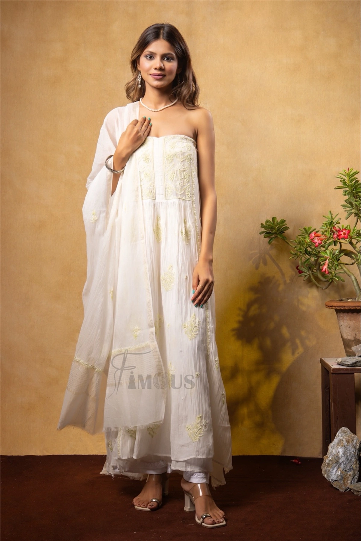 Exude Elegance with the Off White Chikankari and Zardozi Semi-Stitched Gown