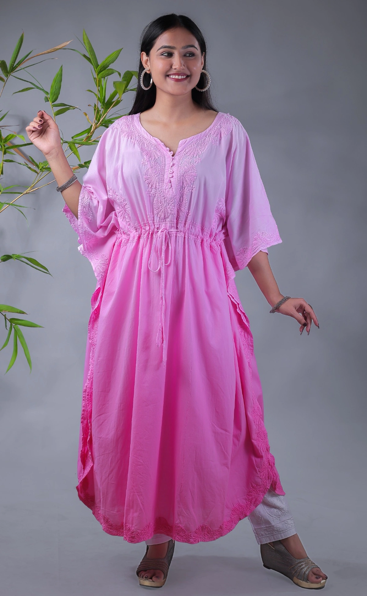 Ombre Yellow Chikankari Kaftan