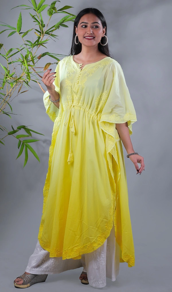 Ombre Yellow Chikankari Kaftan