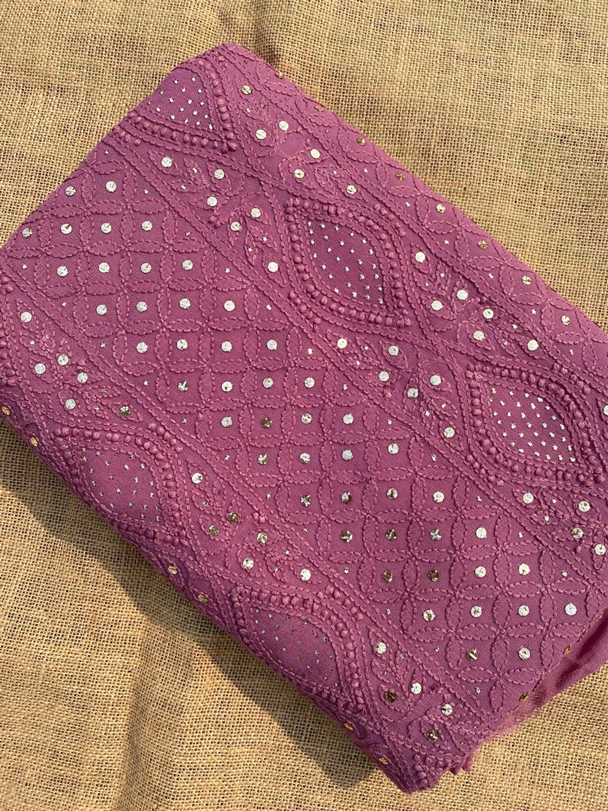 Elevate your ethnic wardrobe with our exquisite Onion pink Chikankari unstitched kurta dupatta set, crafted on luxurious viscose georgette fabric. This stunning ensemble features all-over fine Chikankari embroidery, adorned with delicate mukaish highlights.
