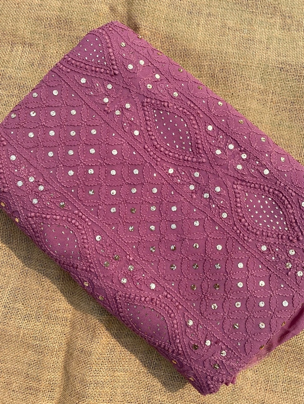 Onion Pink Chikankari Mukaish Viscose Unstiched Dress