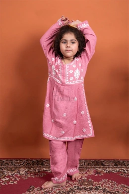 Onion Pink Kids Chikankari Naira Style Dress