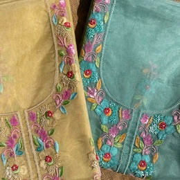 Elevate your ethnic wardrobe with this exquisite unstitched kurta material crafted in premium organza fabric. Light, sheer, and graceful, the fabric offers a refined drape that enhances the beauty of intricate hand embroidery.