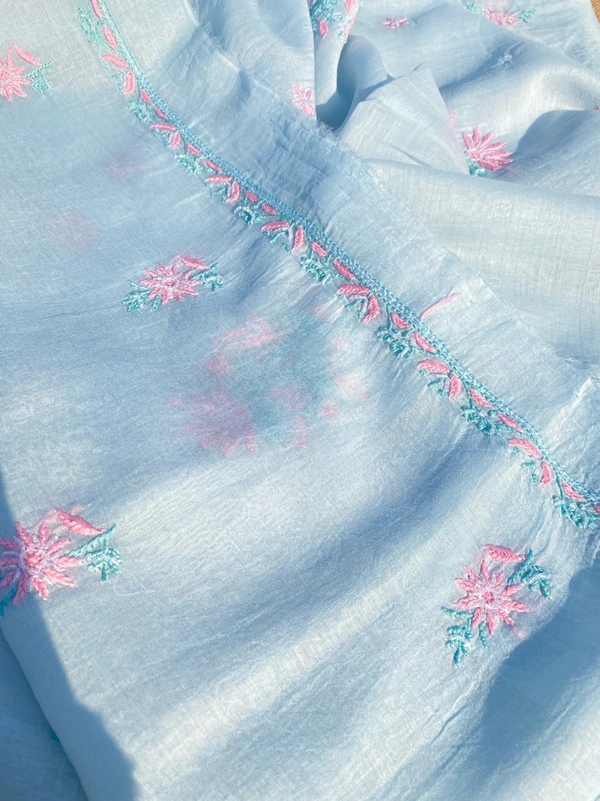 - Work: Fine Chikankari embroidery with pearls, sequins, and katdana work