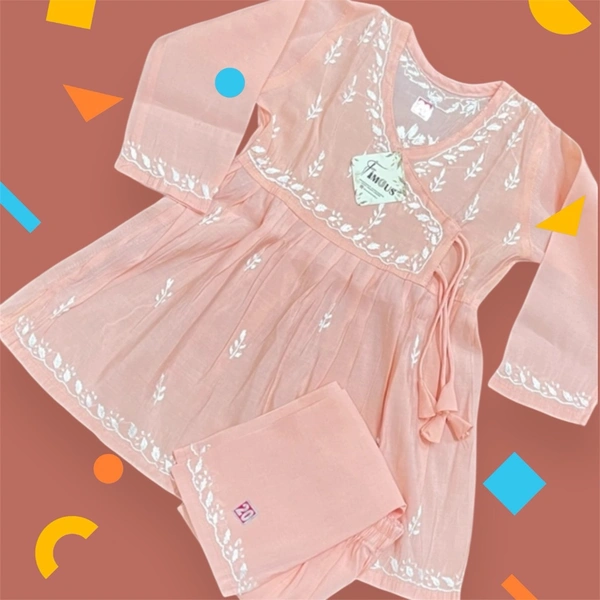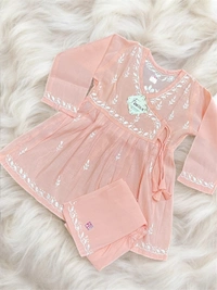 Peach Angarkha Style Chikankari Kids Dress