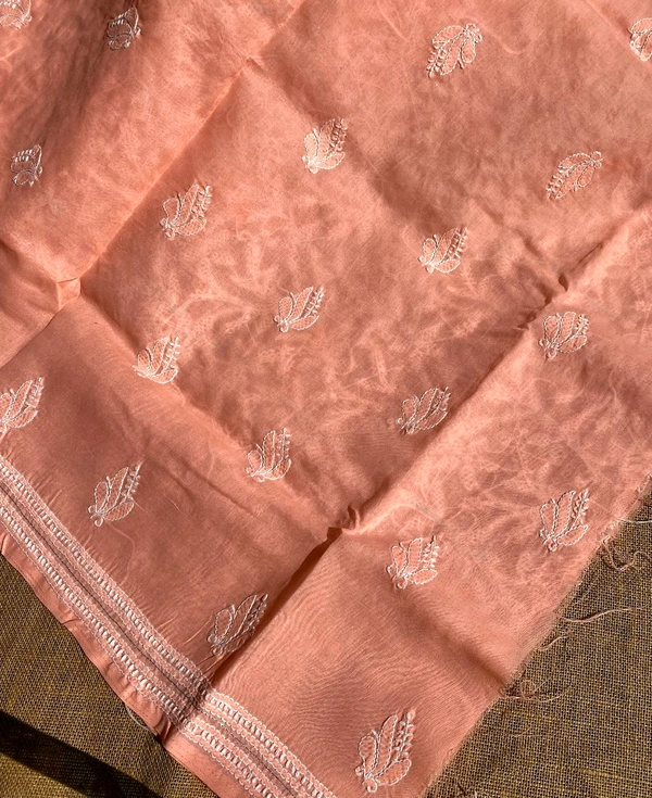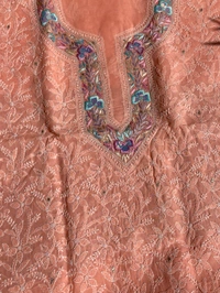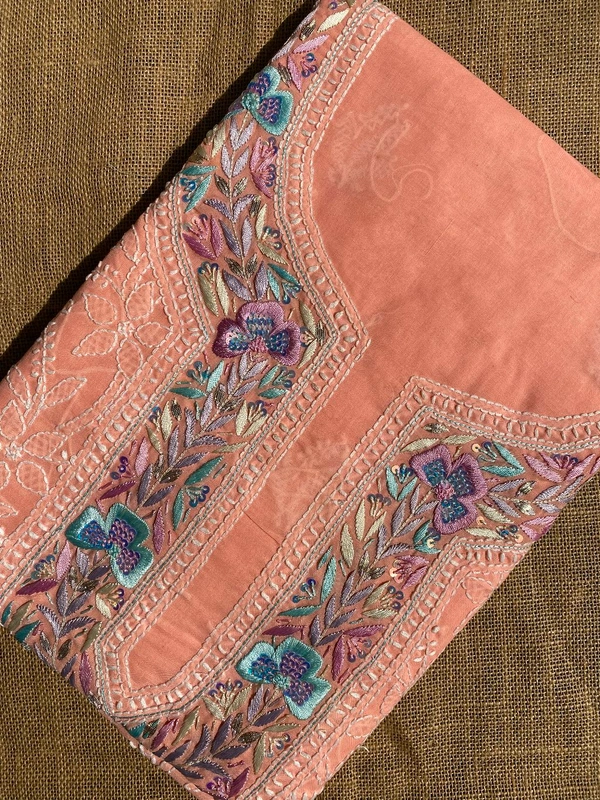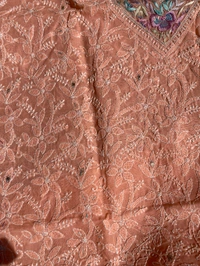 Peach Chikankari Net Cutwork Kurta Unstiched