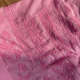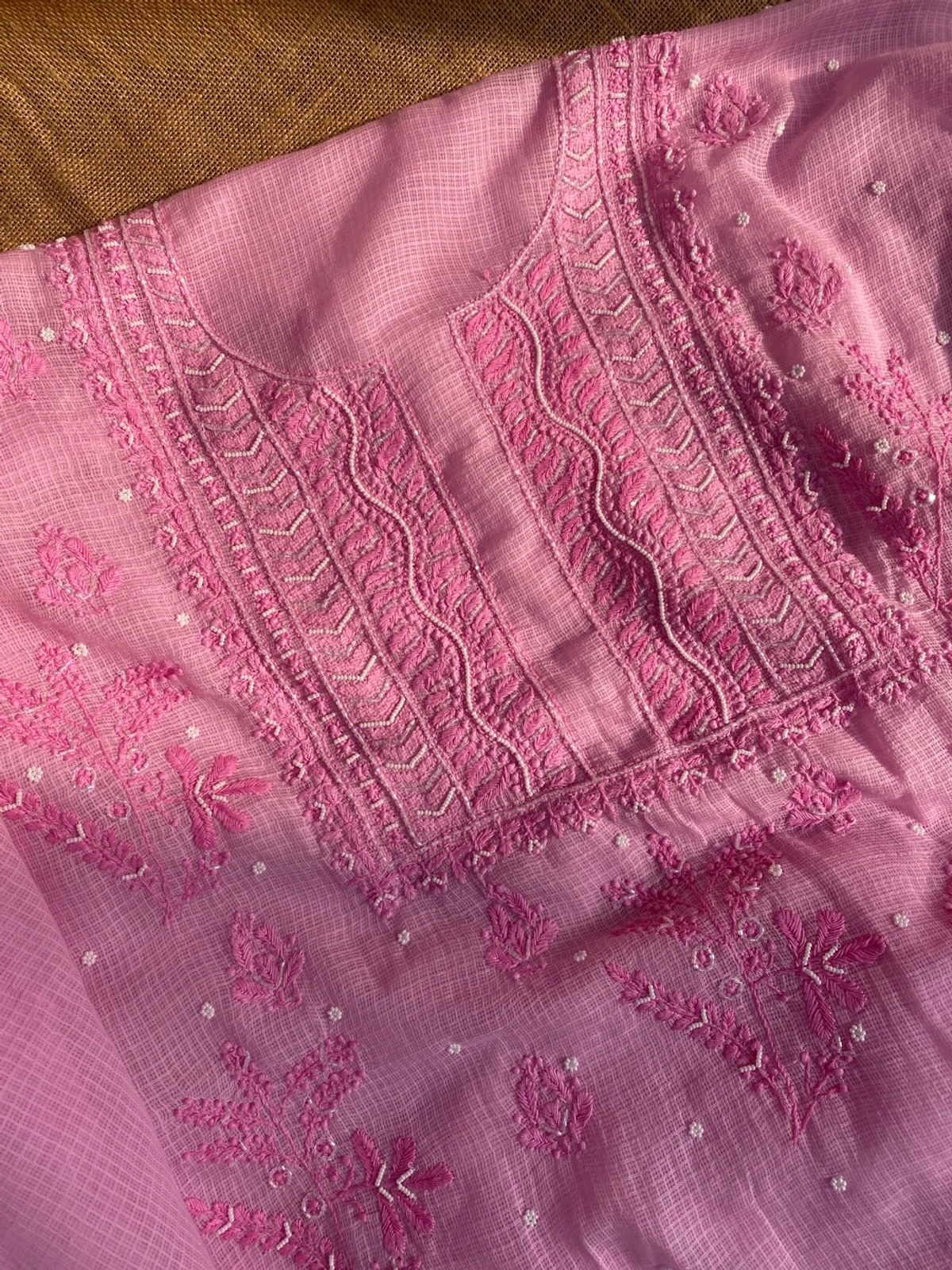 Unstitched Kurta & Dupatta in gorgeous Kota fabric with tone-on-tone pink embroidery ππ»