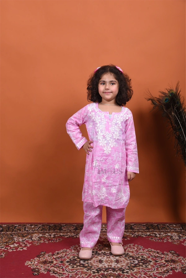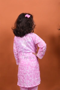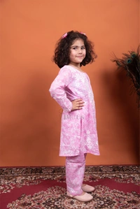 Pink Mulmul Print Chikankari Kids Dress