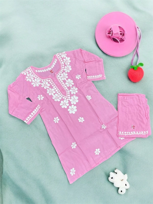 Pink Reyon Chikankari Kids Dress