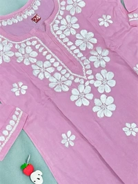 Pink Reyon Chikankari Kids Dress