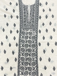 Fine Chikankari embroidery adorns the kurta, intricately woven with black threads.
