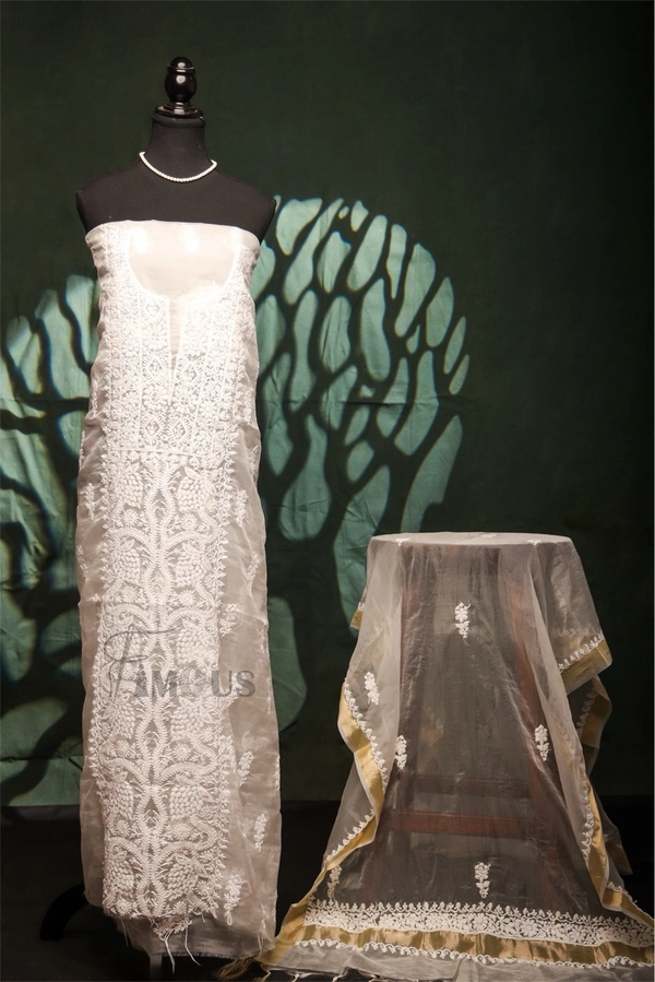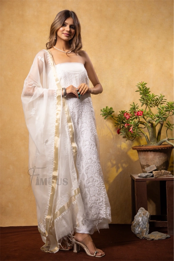 Premium Chikankari White Organza Kurta Dupatta Set
