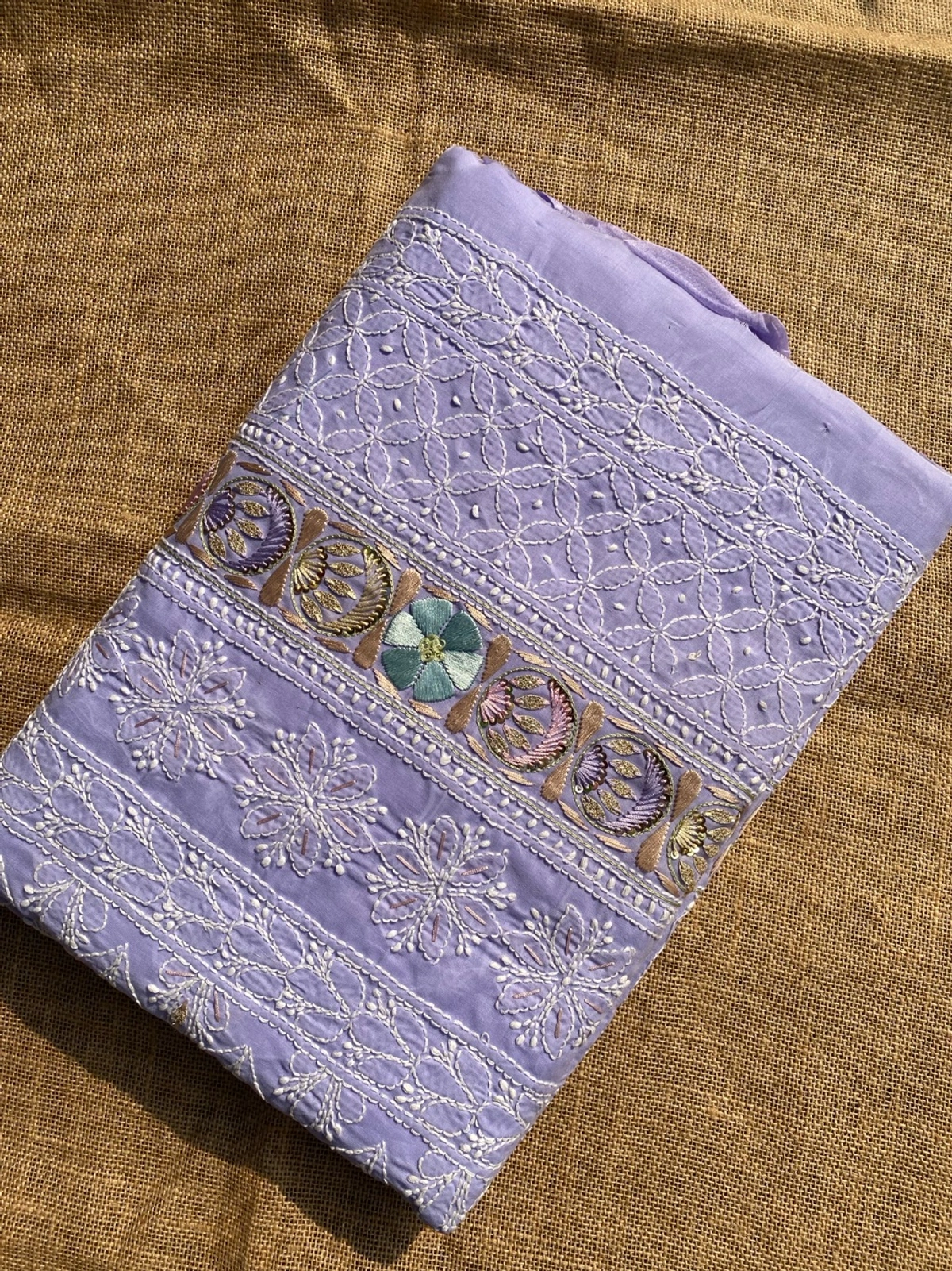 Light Purple Chikankari Unstitched Suit in Cotton Voile