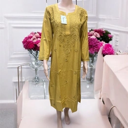 Mustard Chikankari Kurti in Soft Mul Cotton