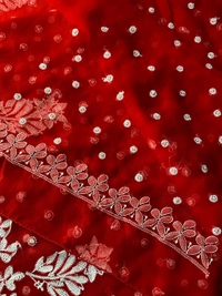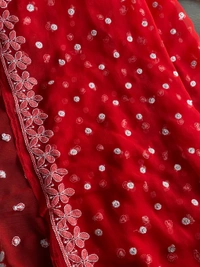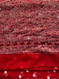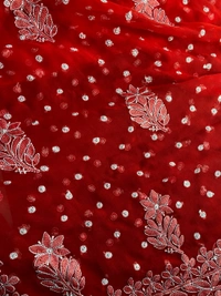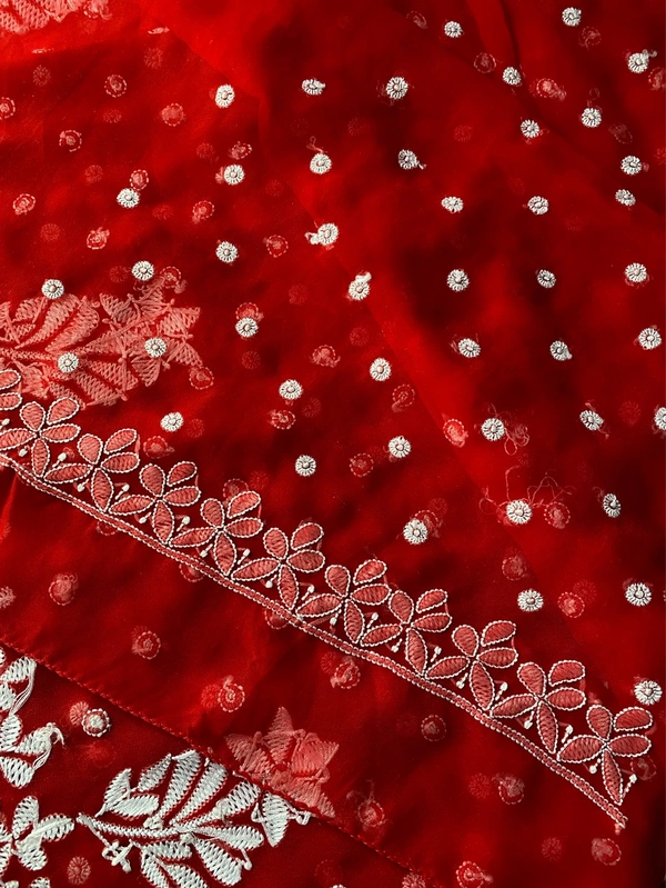 Red Chikankari Saree with Resham Embroidery & Kangan Work