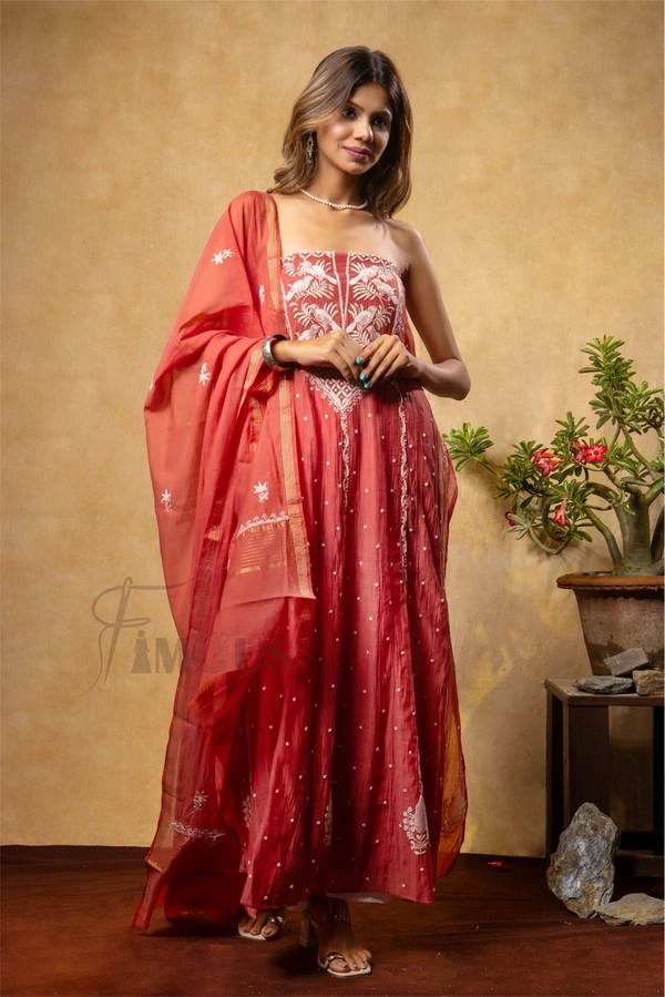 Rust Premium Chikankari Anarkali And Dupatta Set