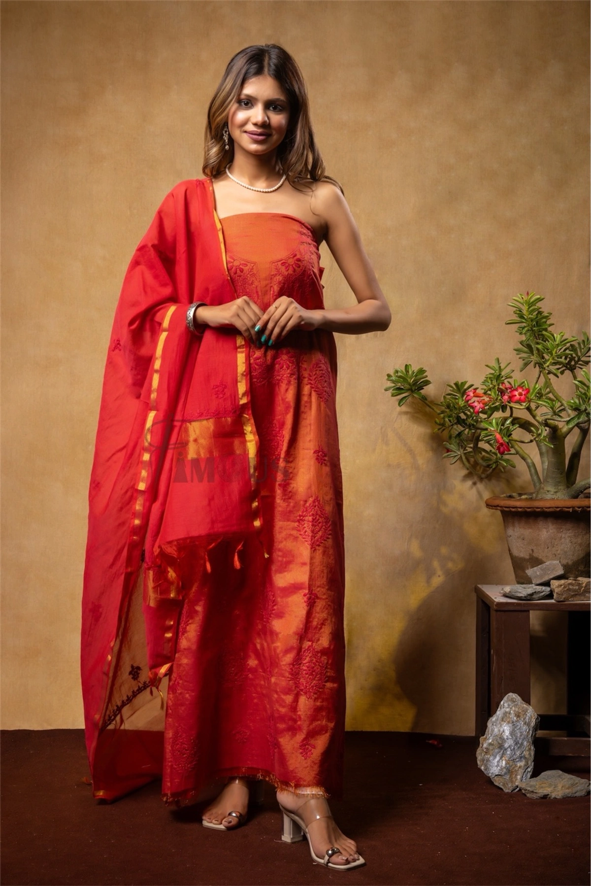 Step into the world of timeless elegance with the Rustic Orange Chikankari Unstitched Kurta Dupatta, exclusively from Famous Creations. This masterpiece of artisanal craftsmanship seamlessly blends traditional artistry with modern sophistication. Perfect for weddings, festive gatherings, or refined daytime events, this unstitched ensemble invites you to personalize its beauty to suit your unique style.