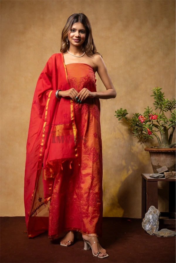 Rustic Orange Chikankari Unstiched Kurta Dupatta