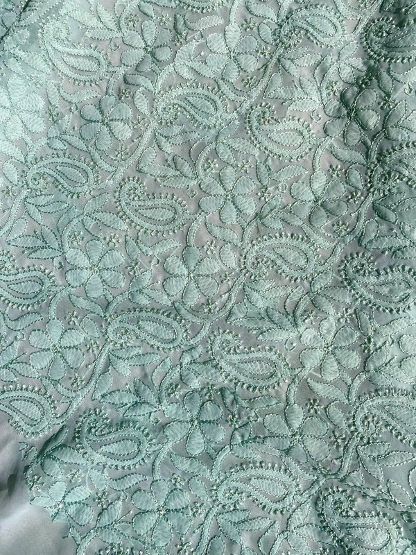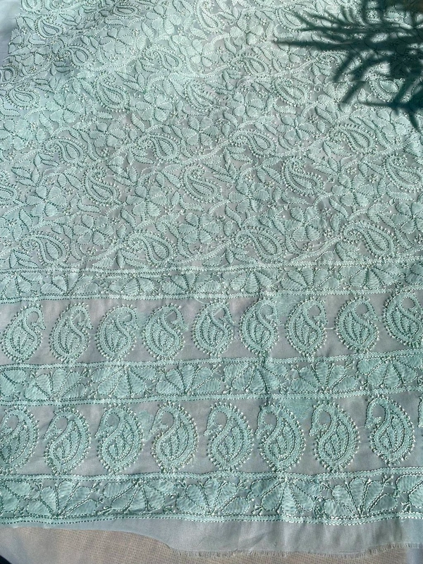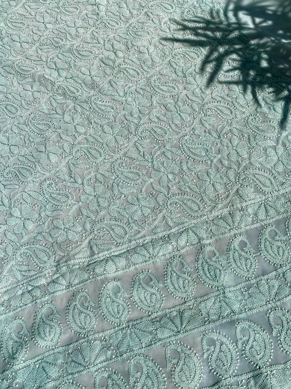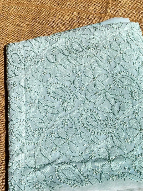 Light Mint Green Unstitched Kurta – Faux Georgetown with Resham Chikankari