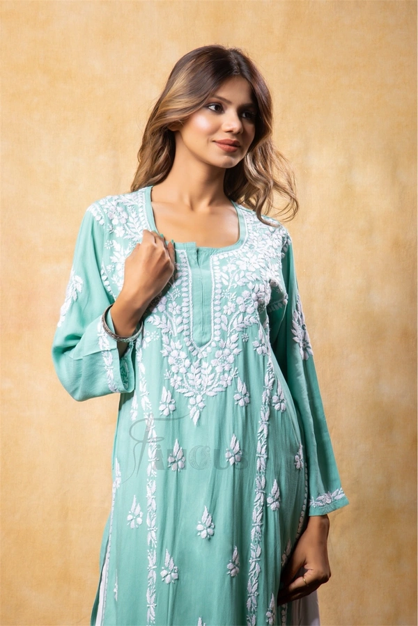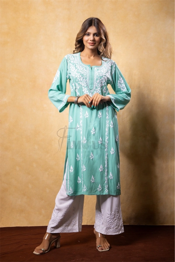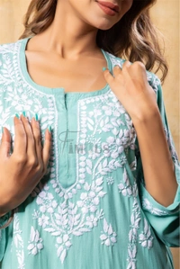 Sea Green Chikankari Kali Style Long Kurti
