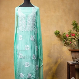 Sea Green Chikankari Unstitched Suit in Modal Fabric