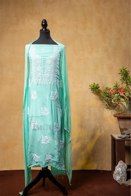 Elevate your wardrobe with this exquisite Sea Green Chikankari Unstitched Suit, a perfect blend of elegance, tradition, and modern sophistication. Crafted from premium soft modal fabric, this unstitched dress material is designed to let you embrace your unique style while showcasing the timeless art of Ghaaspatti hand embroidery. Whether you're attending a festive celebration, a formal event, or a semi-formal gathering, this ensemble promises to make you stand out with its rich craftsmanship and graceful charm.