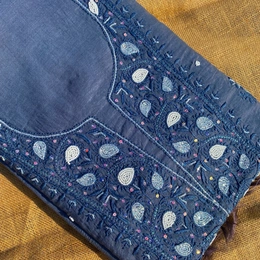 Add a touch of serenity to your wedding and special occasion wardrobe with our stunning slate grey Chikankari unstitched kurta dupatta set, crafted on luxurious soft mul chanderi fabric. This exquisite ensemble features fine Chikankari embroidery, intricately adorned with pearls, sequins, and katdana work.