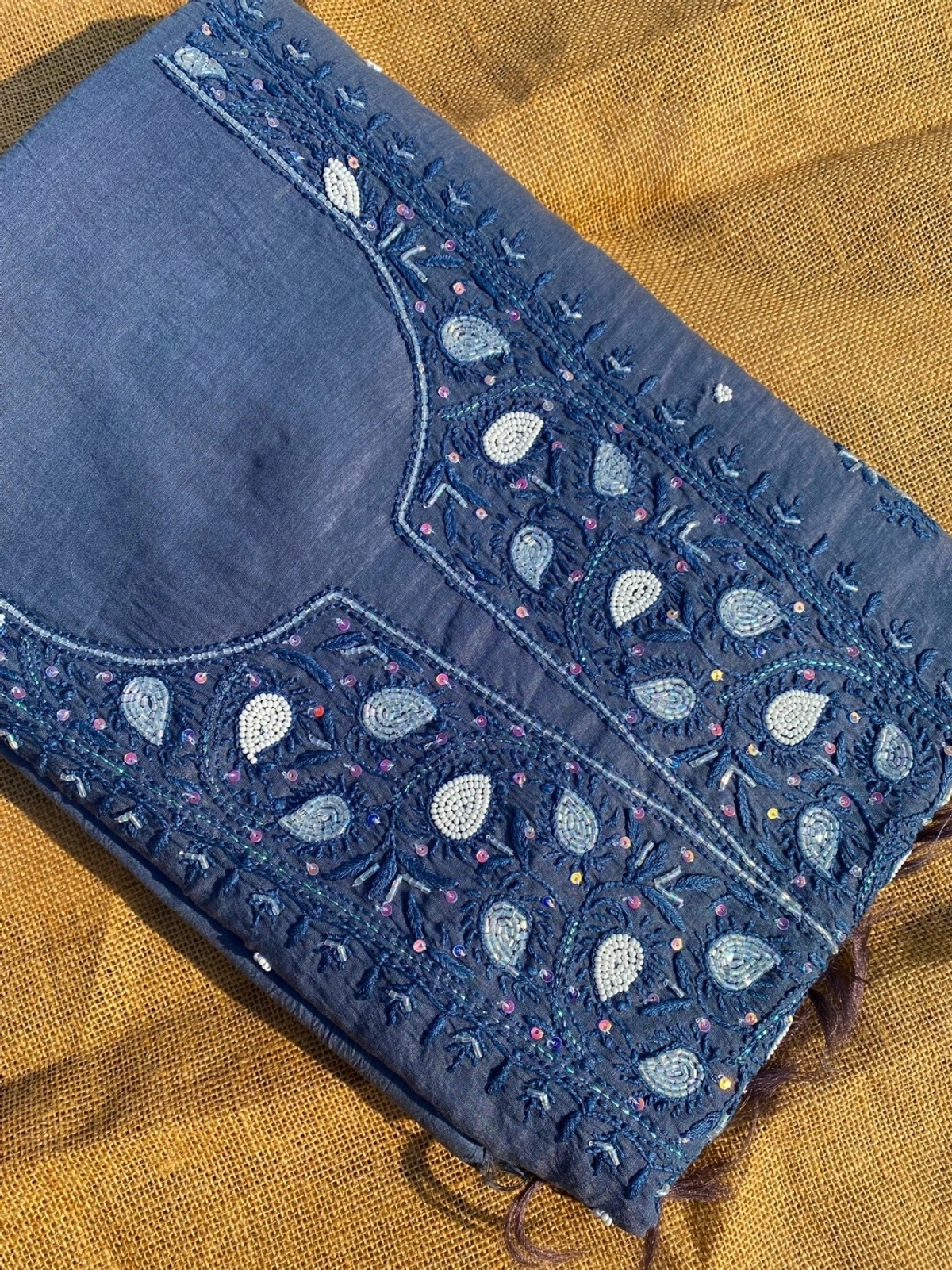 - Work: Fine Chikankari embroidery with pearls, sequins, and katdana work
