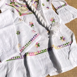 Whether it’s a family gathering, festive celebration, or a casual day out, this outfit is designed to make your little girl stand out effortlessly. The delicate embroidery and soft fabric ensure she looks stylish while staying cozy.