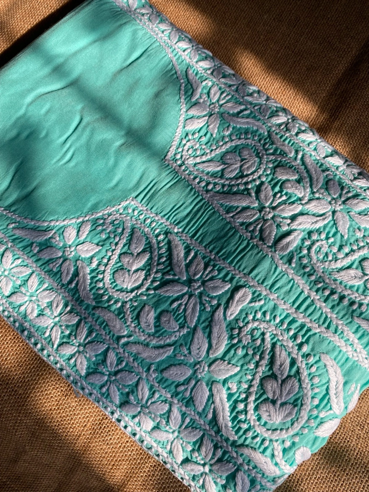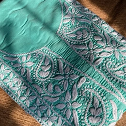 Elevate your wardrobe with this exquisite Sea Green Chikankari Unstitched Suit, a perfect blend of elegance, tradition, and modern sophistication. Crafted from premium soft modal fabric, this unstitched dress material is designed to let you embrace your unique style while showcasing the timeless art of Ghaaspatti hand embroidery. Whether you're attending a festive celebration, a formal event, or a semi-formal gathering, this ensemble promises to make you stand out with its rich craftsmanship and graceful charm.