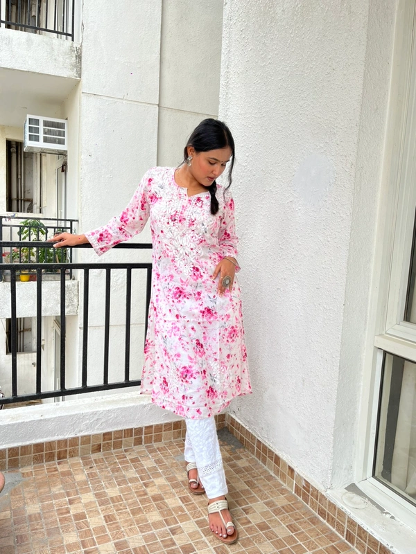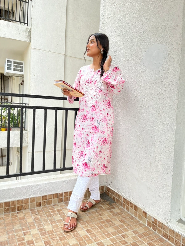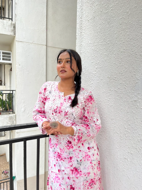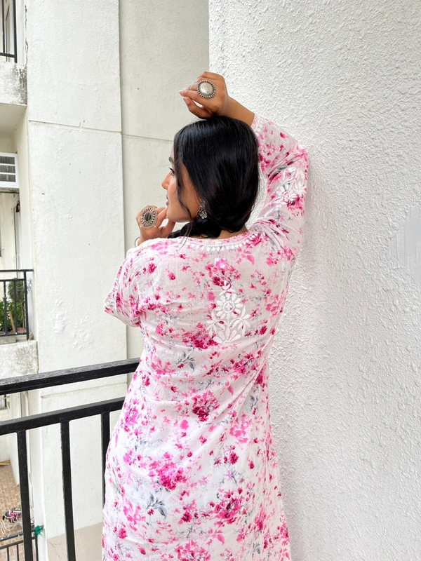Soft Pink Mulprint Chikankari Kurti