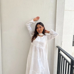 White Chikankari Mulmul Three Layer Frock