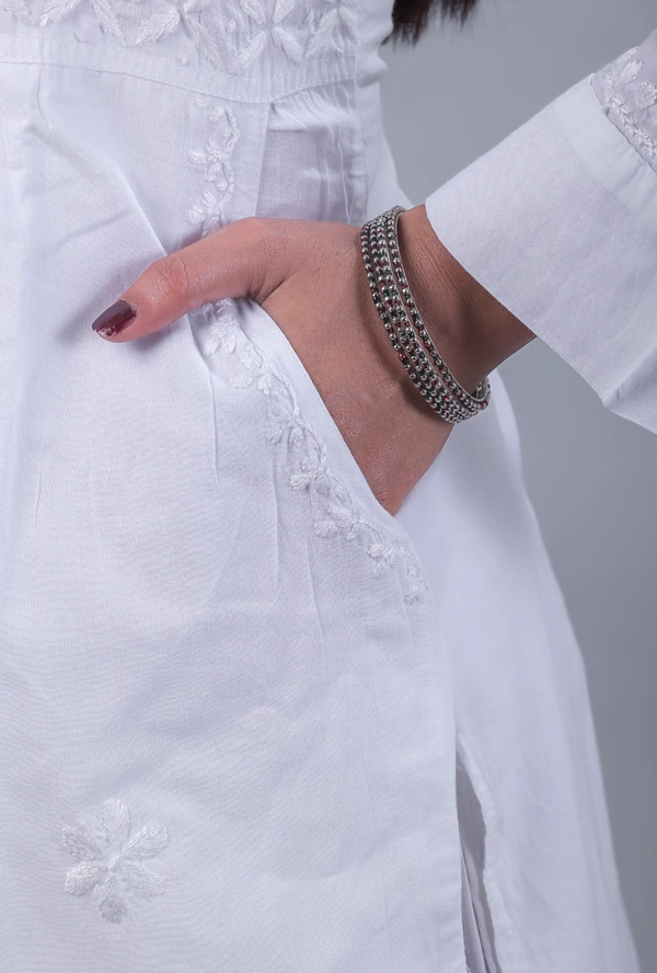 White Chikankari Side Pocket Style Kurti