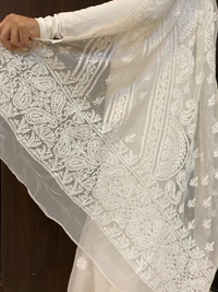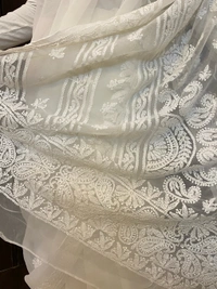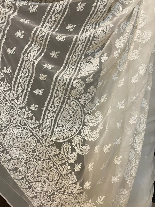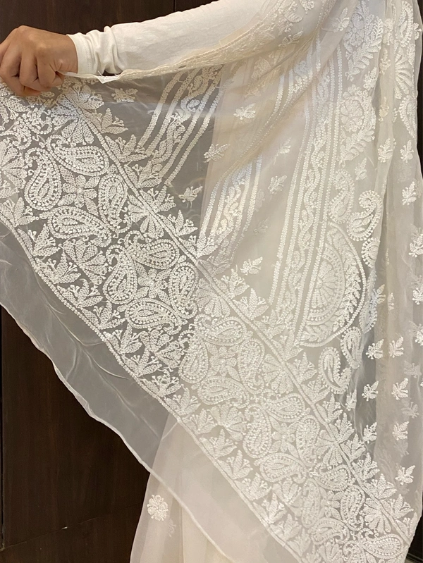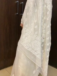 - Work: Handcrafted Chikankari with white resham threads
