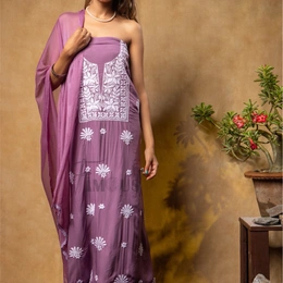 Elevate Your Style with Our Wine Modal Chikankari Unstitched Dress Material