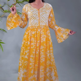 Yellow Chikankari Mulprint Frock
