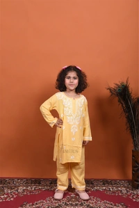 Yellow Reyon Chikankari Kids Dress