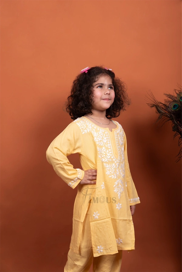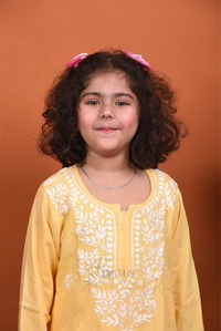 Yellow Reyon Chikankari Kids Dress