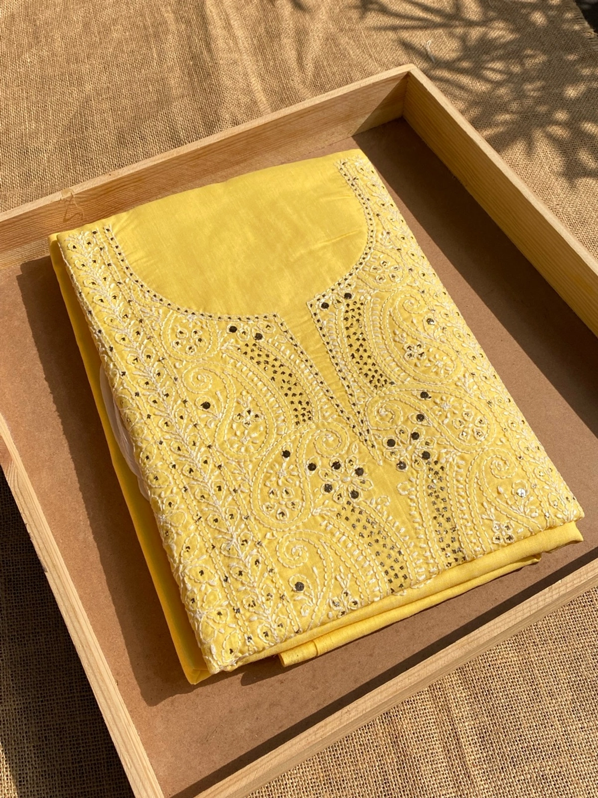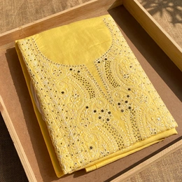 Yellow Traditional Chikankari Mukaish Unstiched Dress