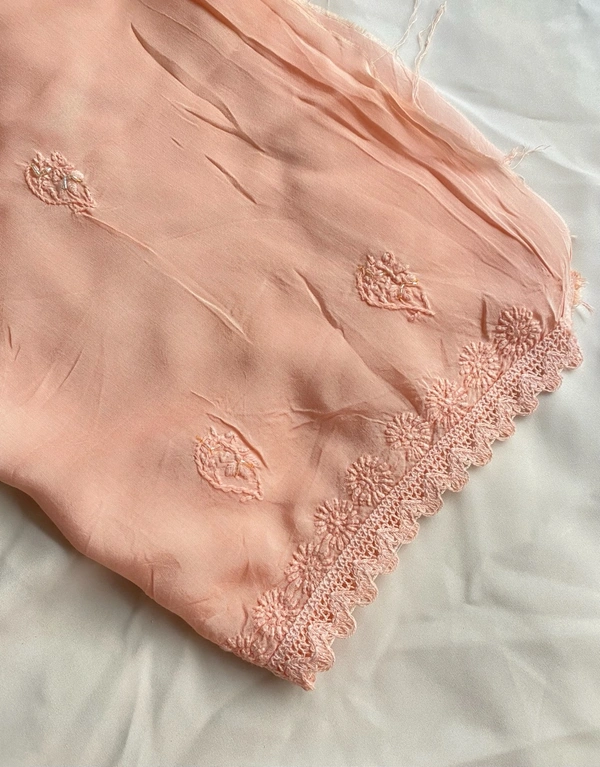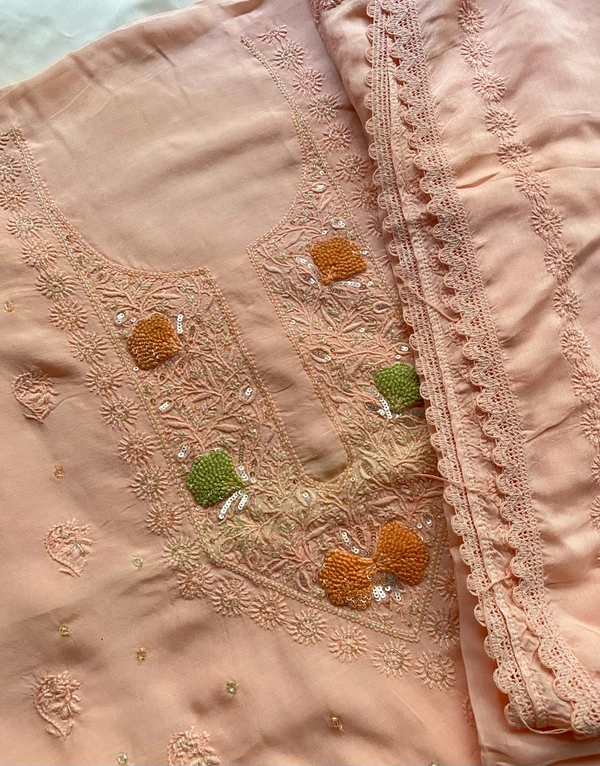 Zaanya Unstiched Peach Chikankari Kurta Dupatta