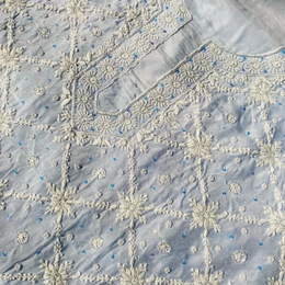 - Work: Fine Chikankari embroidery with pearl, sequins, and katdana work